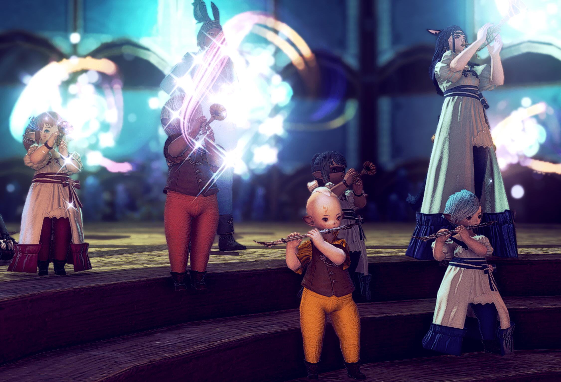 Arranging and performing music in Final Fantasy XIV, based on the Crystal DC.After getting a taste for bard performance with some friends, Hurricane made their own band, which plays an eclectic mix of tracks, with a particular love of metal, close harmony and musical theatre.They studied music (with a major in orchestration) at university, and uses this experience to arrange with sheet music and play only their own arrangements.They hope you enjoy!